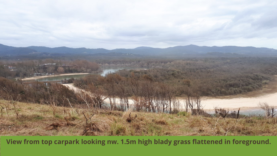 Thankfully, the Kangaroo grass (Themeda australis) and small unique patch of protected Floyd’s grass (Alexfloydia repens) appear to be largely unaffected, while the tough blady grass, sedges and lomandras are recovering from being flattened. Of course there are plenty of other invasive grass varieties adding to the weed mix although the broad leaved paspalum will be an obvious target for the spray contractors.